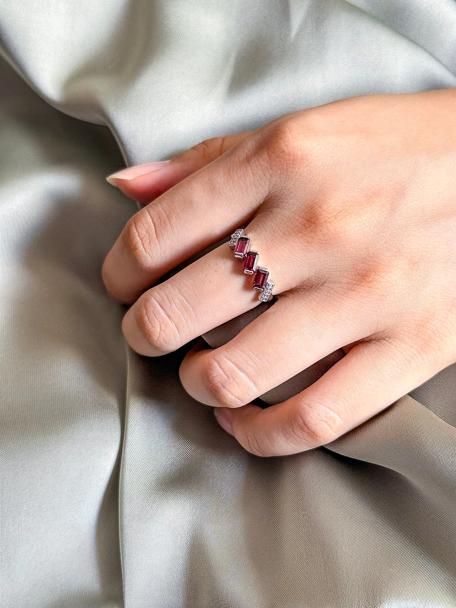 Embrace the raw elegance of modern design. Our collection boldly reinterprets natural garnet, meticulously crafted for your distinctive self-expression.