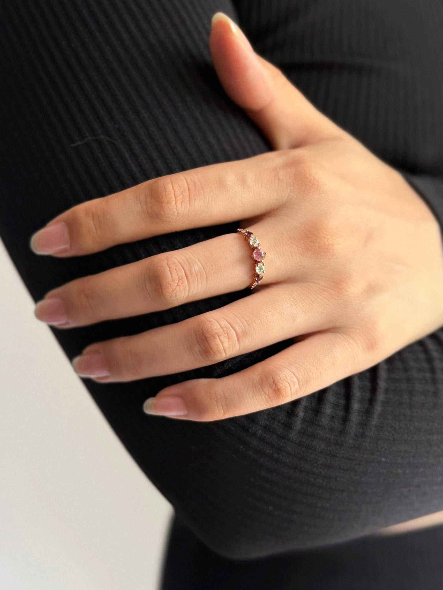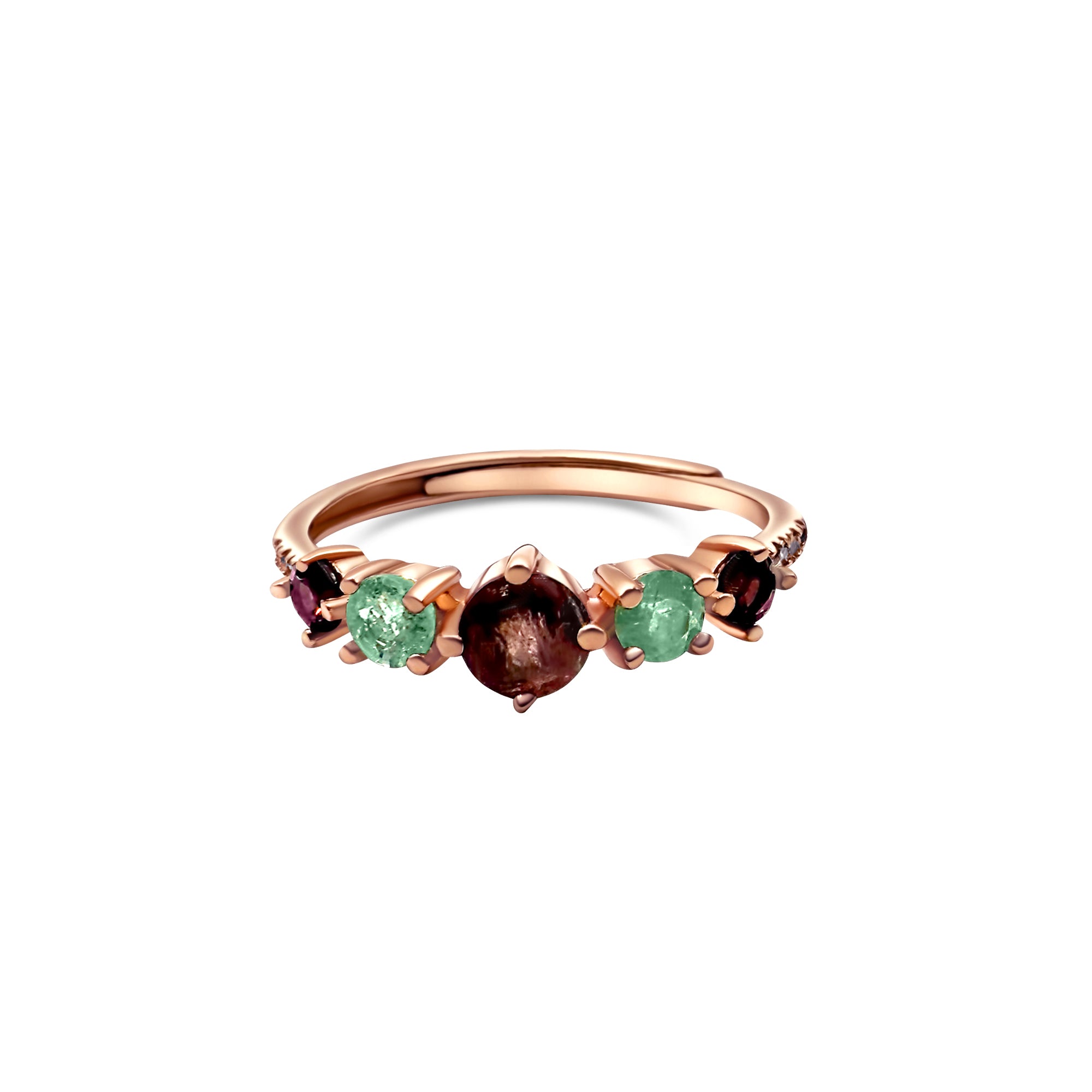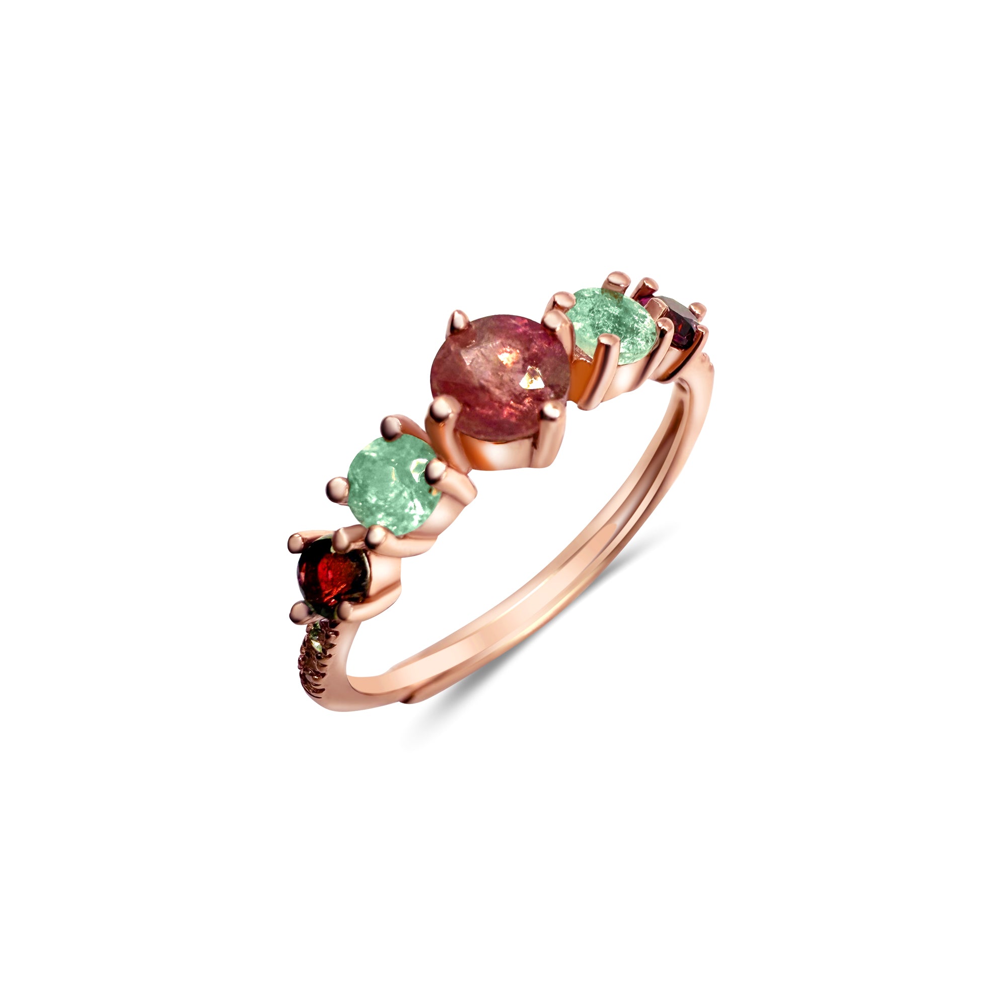 Assorted Tourmaline in rose gold plated Sterling Silver.